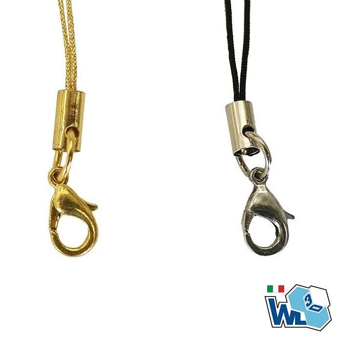 Laccetto per telefonini utilizzabile come supporto per medagliette.