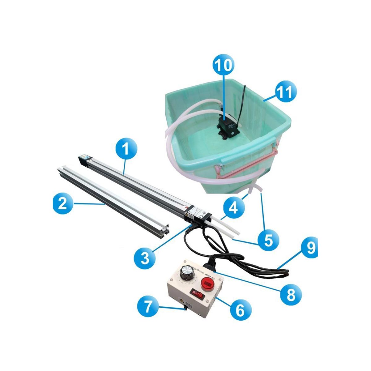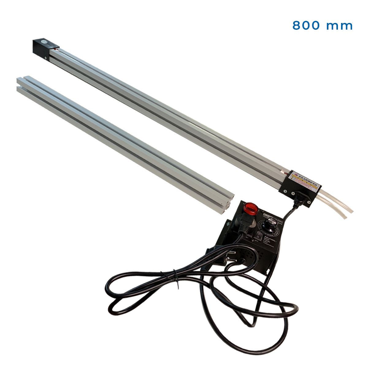 Unità di preriscaldo economica con area di lavoro da 800mm, il raffreddamento ad acqua all'interno della struttura permette di riscaldare la lastra solo in prossimità della lampada e non lungo la zona di appoggio del materiale.