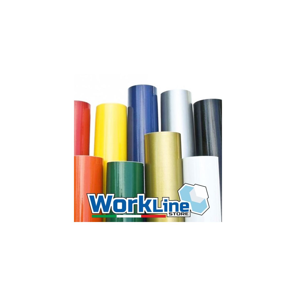 Film in PVC monomerico adesivo di alta qualità (70 µm) lucido, rivestito con un adesivo acrilico e sensibile alla pressione con elevata resistenza agli agenti atmosferici (semi-permanente).